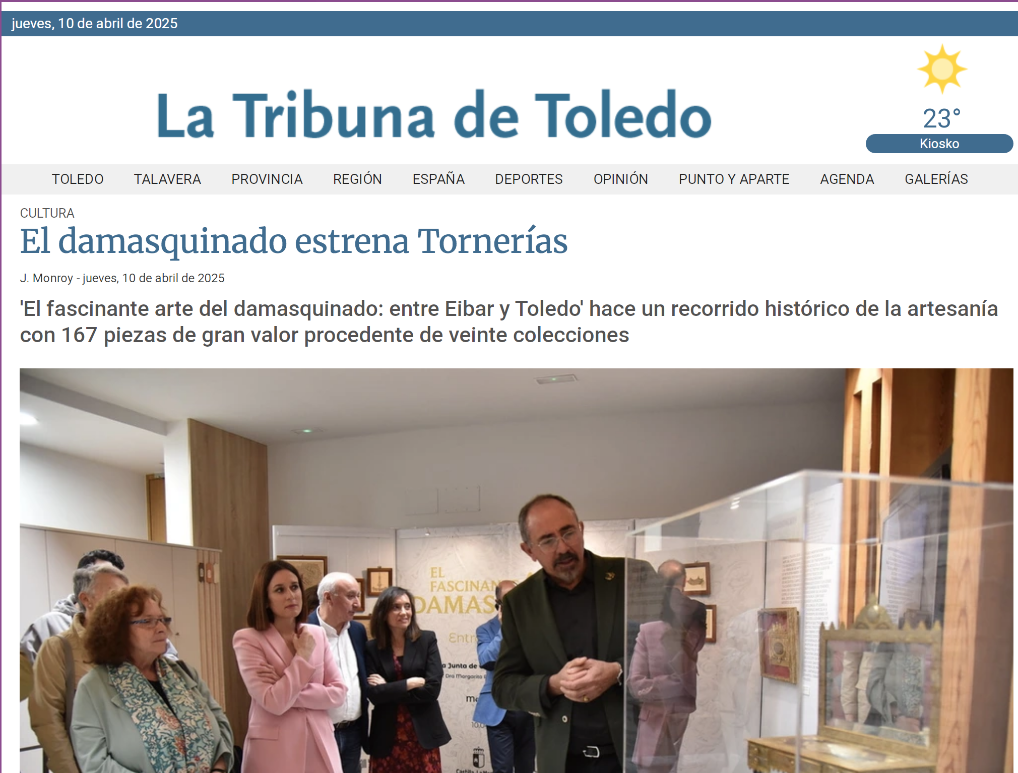 'El fascinante arte del damasquinado: entre Eibar y Toledo' hace un recorrido histórico de la artesanía con 167 piezas de gran valor procedente de veinte colecciones. PARA LLER EL ARTICULO COMPLETO EN LA "TRIBUNA DE TOLEDO" PINCHA AQUI