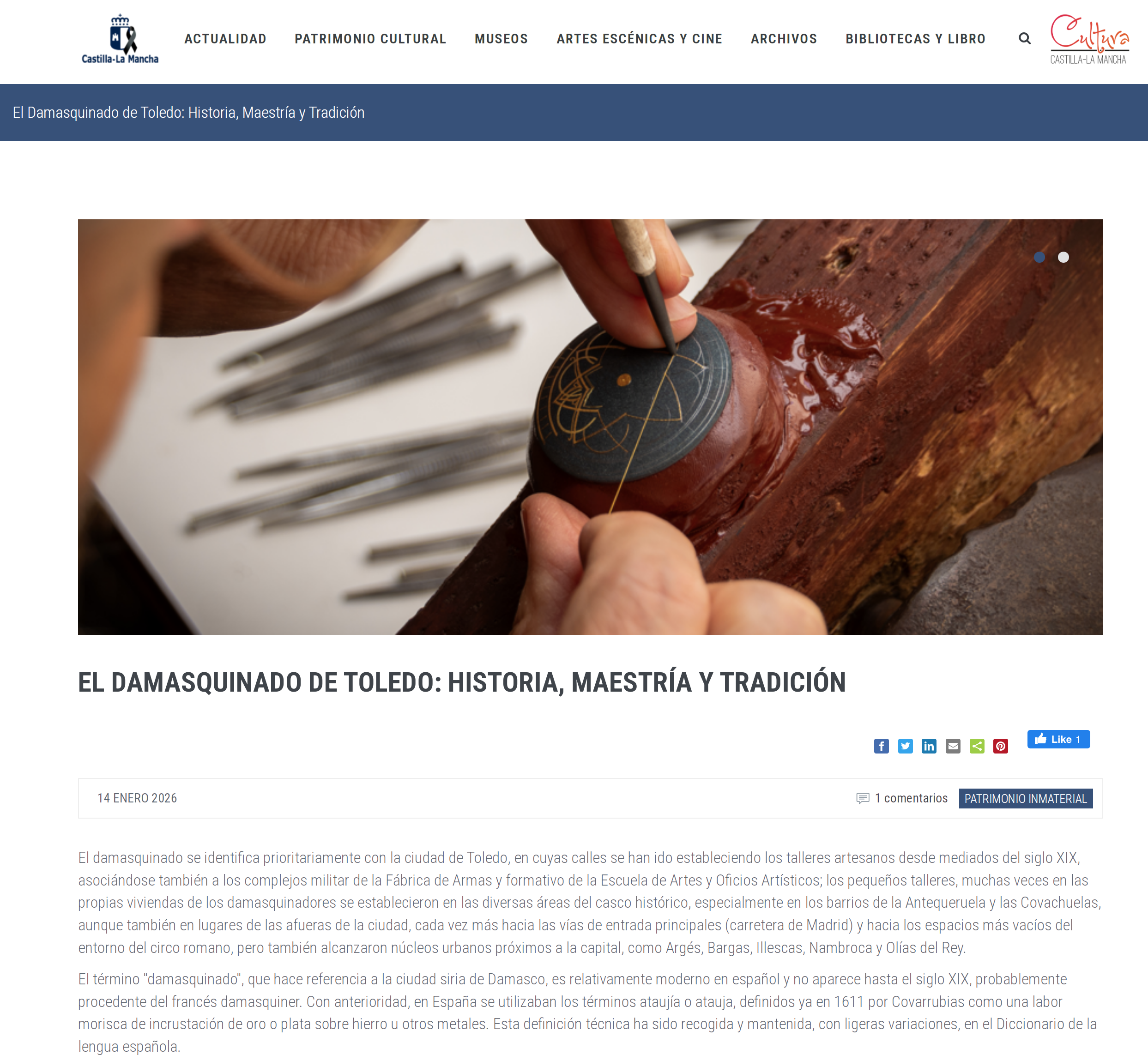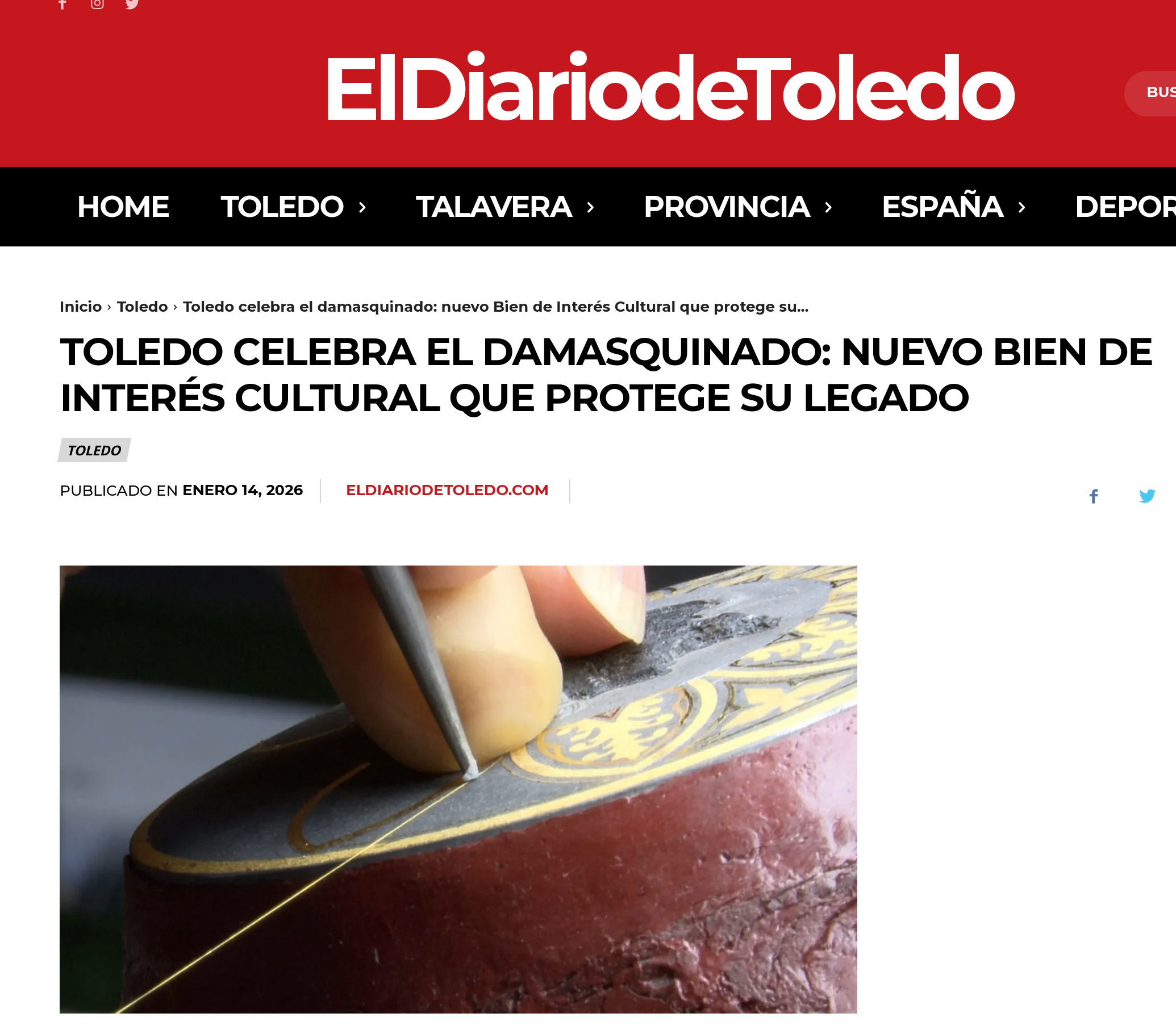 El damasquinado de Toledo ha sido oficialmente reconocido como Bien de Interés Cultural (BIC) en la categoría de Bien Inmaterial por el Gobierno de Castilla-La Mancha. Esta decisión se fundamenta en la intención de proteger la identidad y la memoria colectiva de la ciudad, así como asegurar el futuro de esta importante tradición. PARA LEER EL ARTICULO COMPLETO PINCHA AQUI