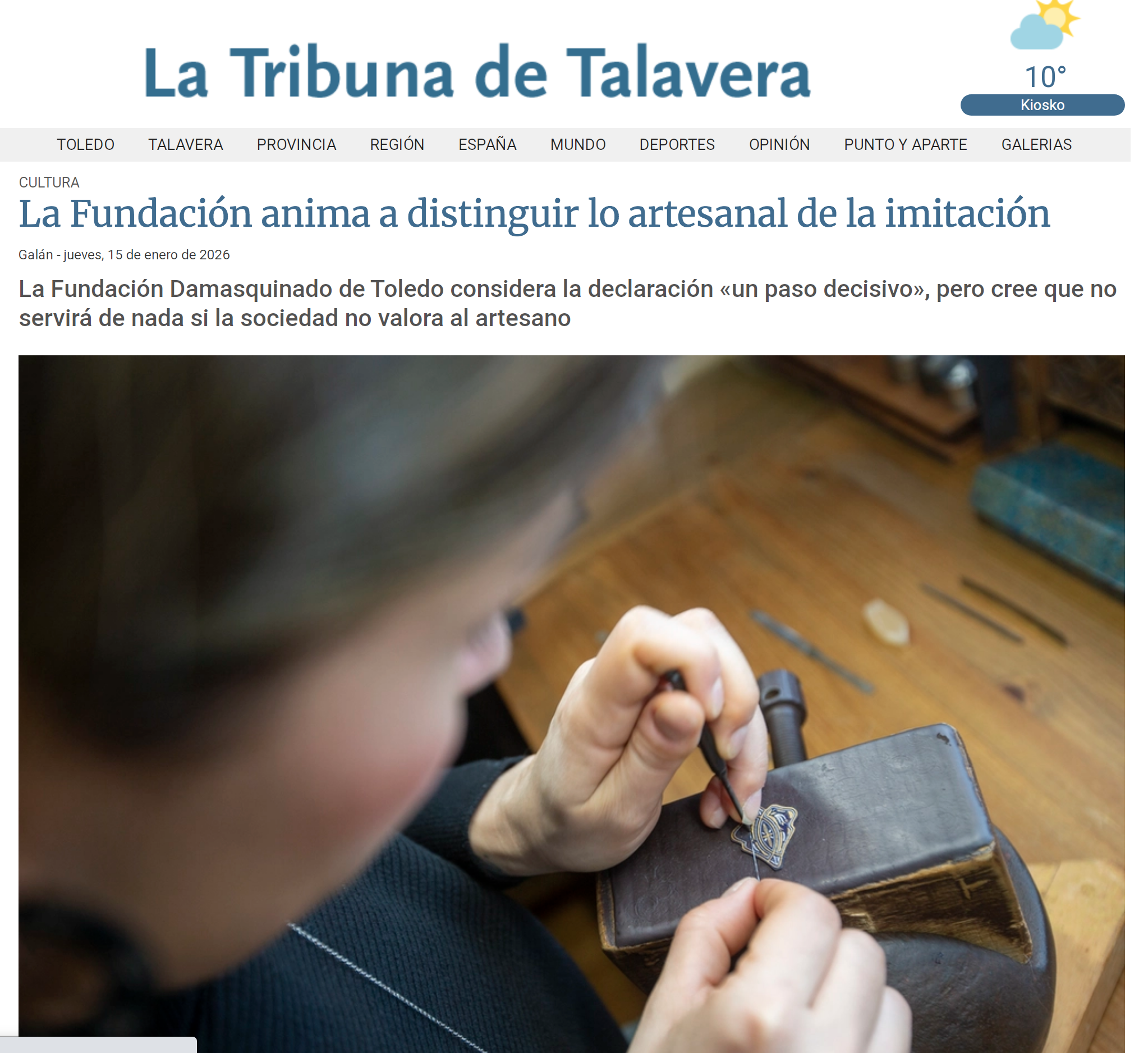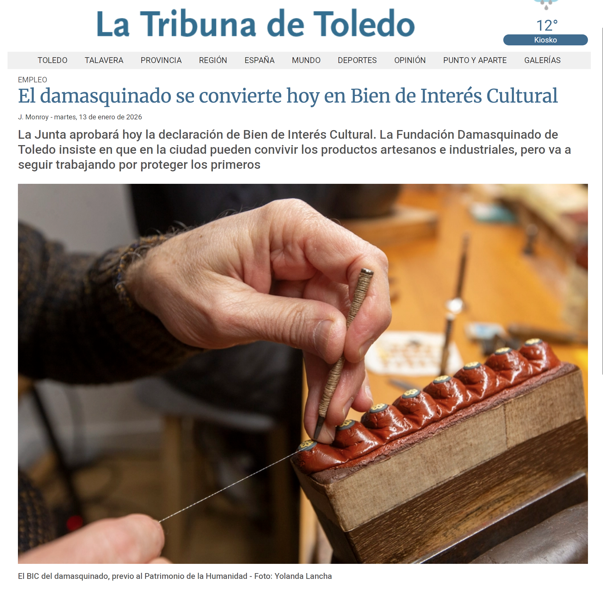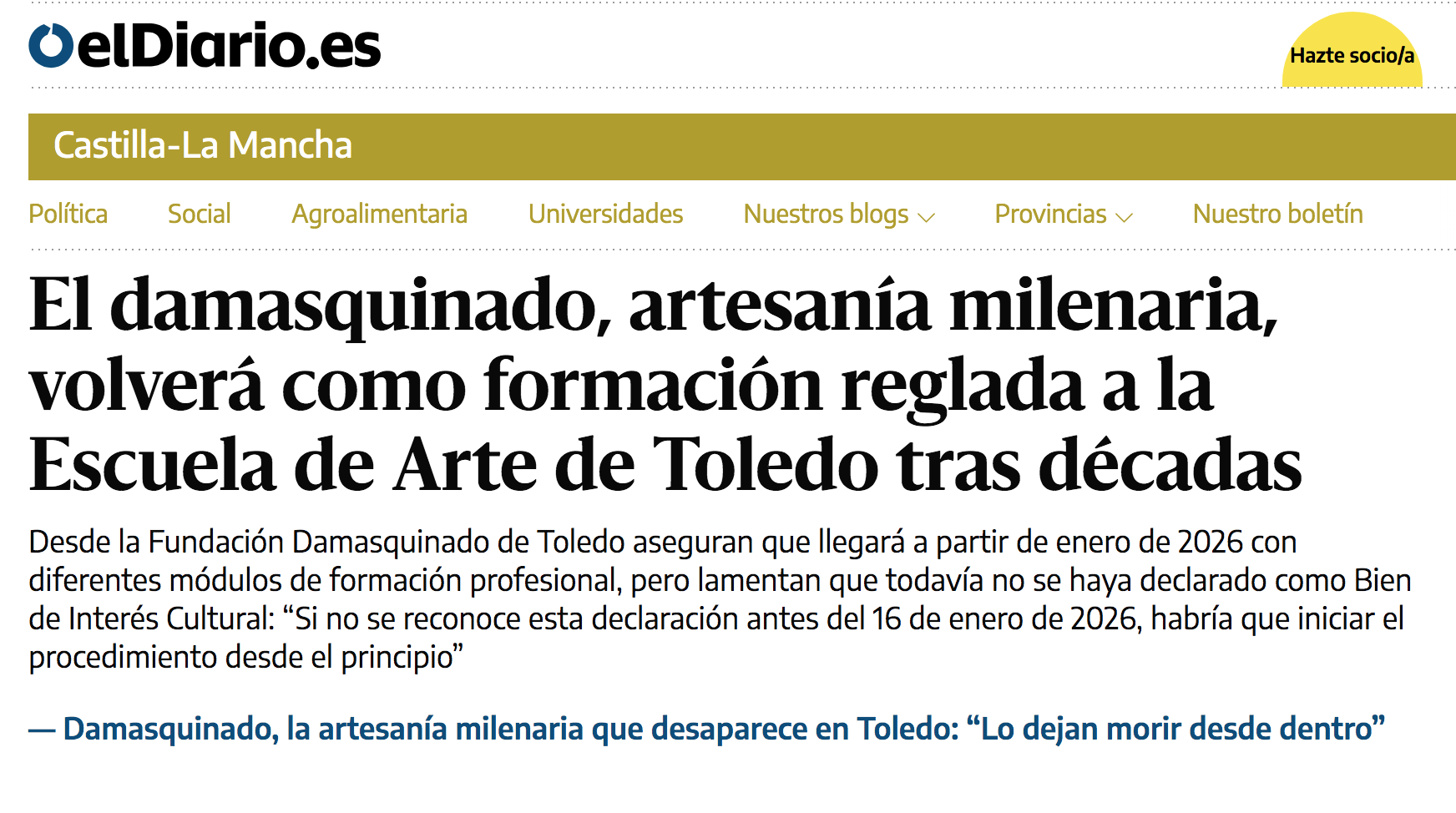 Desde la Fundación Damasquinado de Toledo aseguran que llegará a partir de enero de 2026 con diferentes módulos de formación profesional, pero lamentan que todavía no se haya declarado como Bien de Interés Cultural: “Si no se reconoce esta declaración antes del 16 de enero de 2026, habría que iniciar el procedimiento desde el principio” PARA LEER EL ARTÌCULO COMPLETO PINCHA AQUI