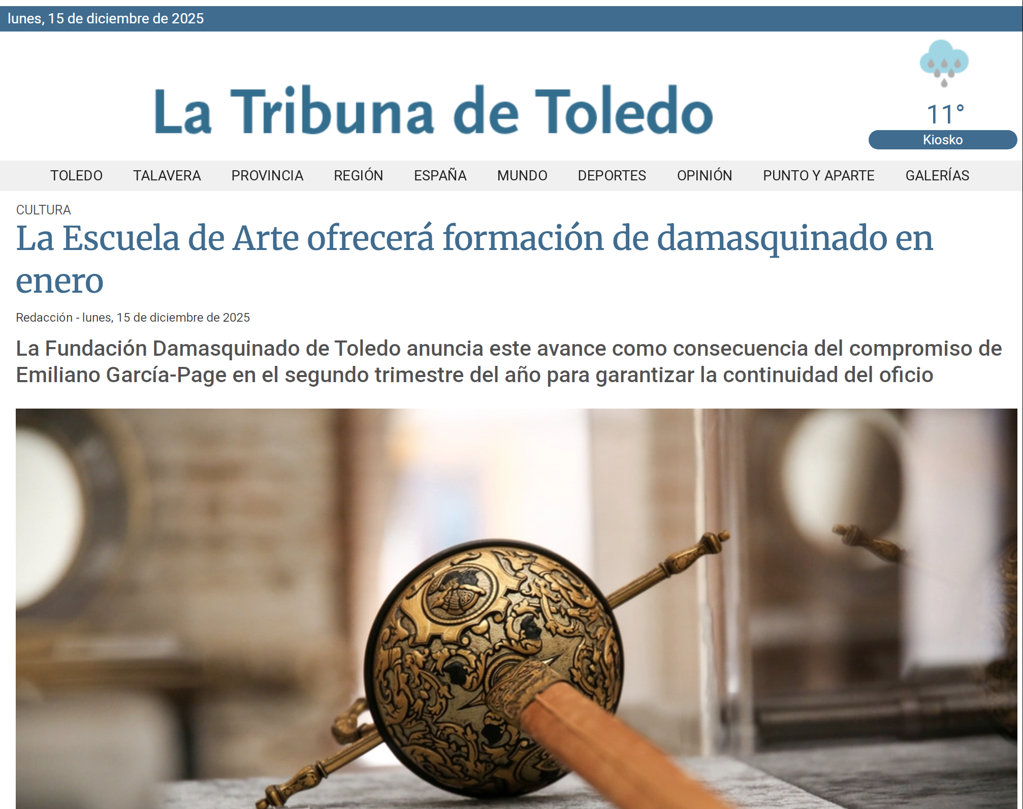 En enero de 2023, la Fundación Damasquinado de Toledo solicitó a la Consejería de Educación y Cultura de la Junta la declaración del damasquinado artesanal como Bien de Interés Cultural (BIC). El expediente fue incoado el 16 de enero de 2025, y la normativa establece que, si en el plazo de un año no se resuelve, la solicitud caduca. Esto significa que, si el 16 de enero de 2026 no se ha reconocido al damasquinado artesanal como BIC, habría que reiniciar todo el procedimiento, algo especialmente difícil de justificar ahora que la Junta va a poner en marcha una formación reglada en esta disciplina.