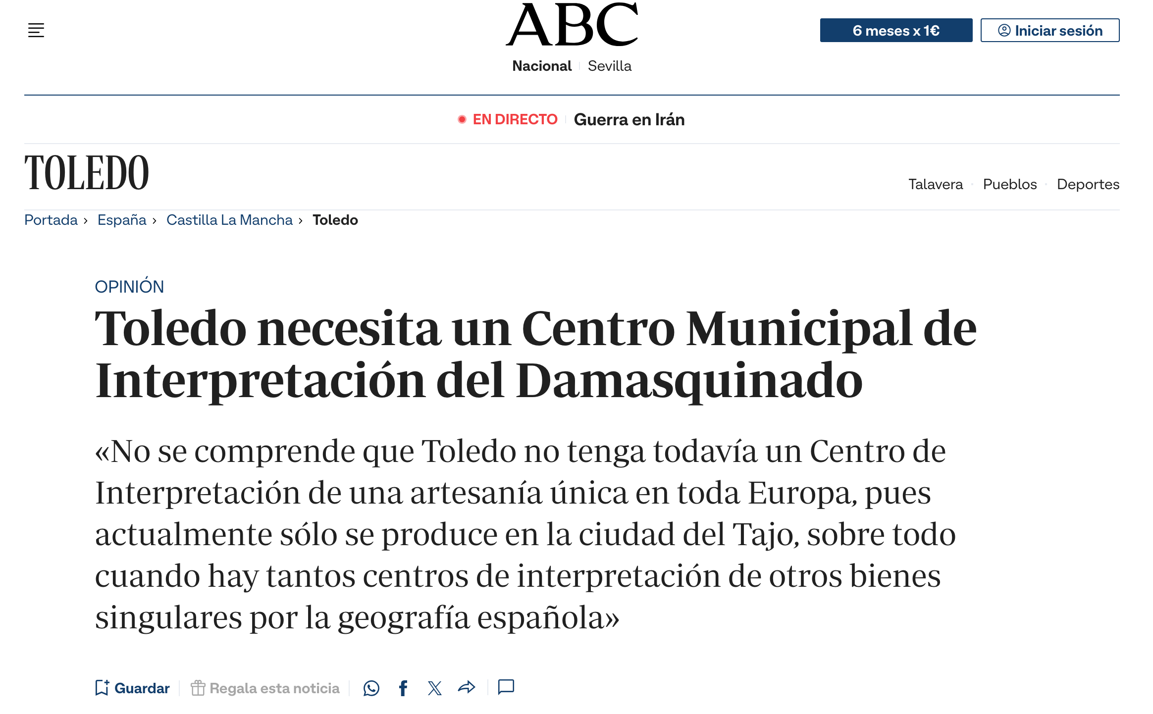«No se comprende que Toledo no tenga todavía un Centro de Interpretación de una artesanía única en toda Europa, pues actualmente sólo se produce en la ciudad del Tajo…»